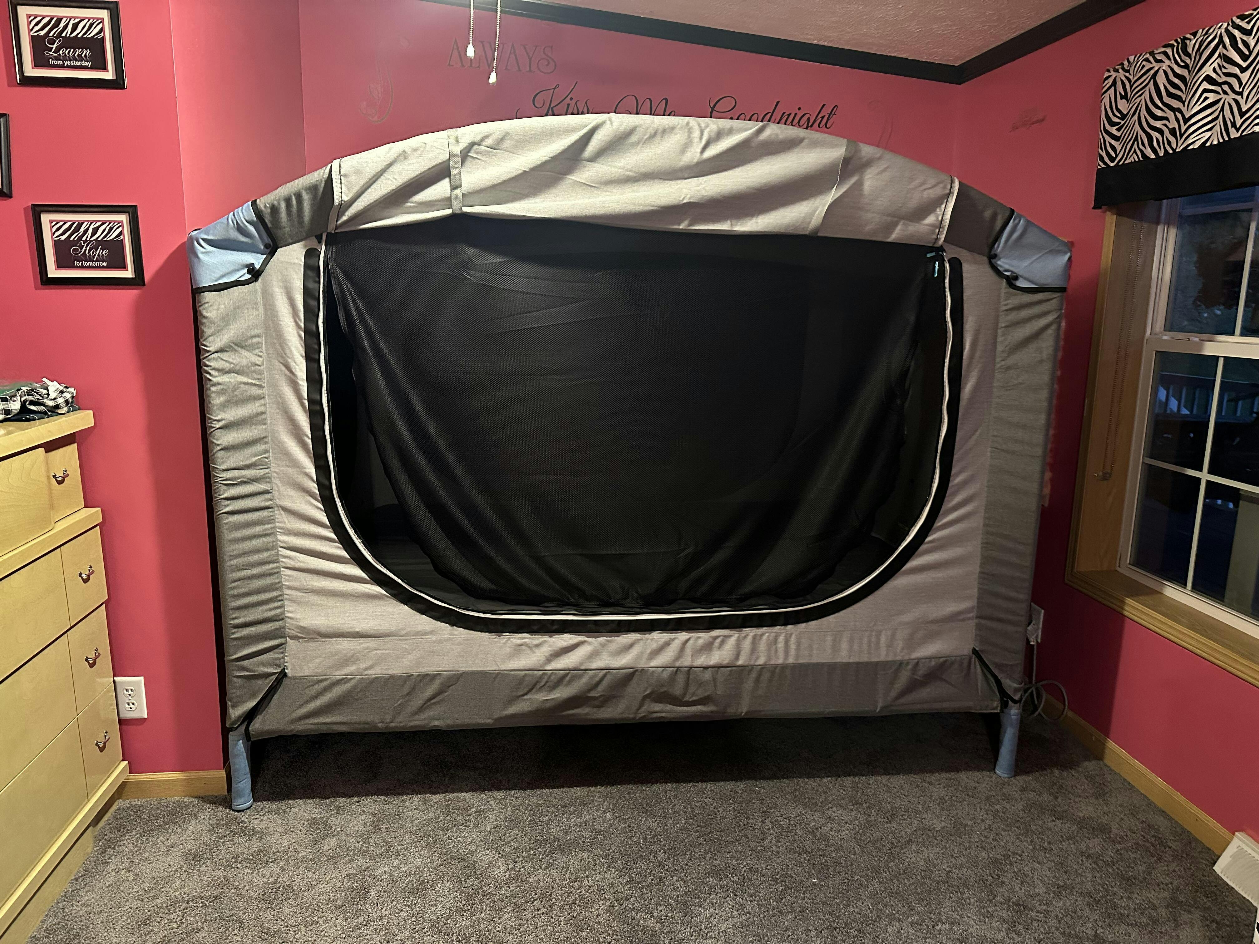 This bed has been life-changing for us! Our autistic daughter loved this bed from the first minute and it has not only given her a quiet, cozy space to retreat to when she’s feeling overwhelmed during the day, it has also helped her sleep better through the night, which means better sleep for us!